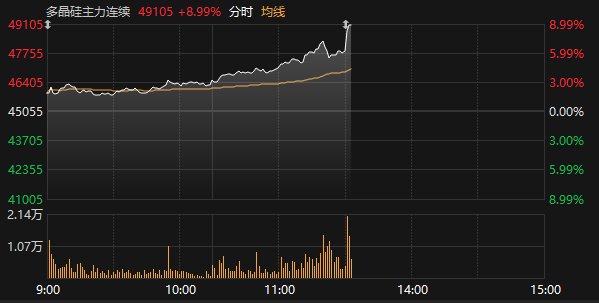 上证报中国证券网讯 据Choice数据股票配资最新资讯,7月22日,多晶硅期货主力合约盘中涨停,报49105元/吨。